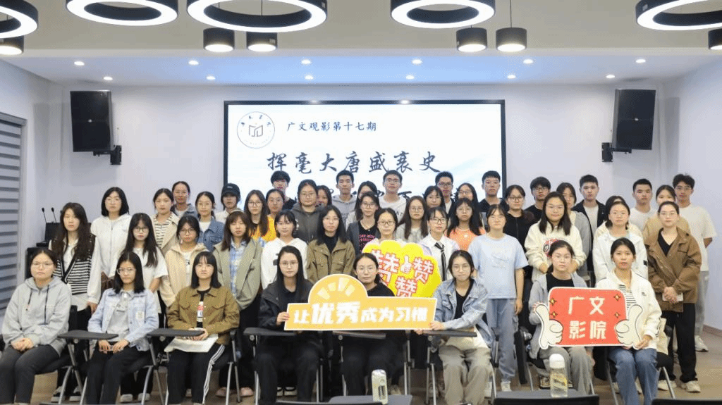 10月21日晚,广文书院在多功能厅举办了以“挥毫大唐盛衰史,泼墨长安万里情”为主题的集体观影活动。广文学子齐聚一堂,共同观看了电影《长安三万里》。