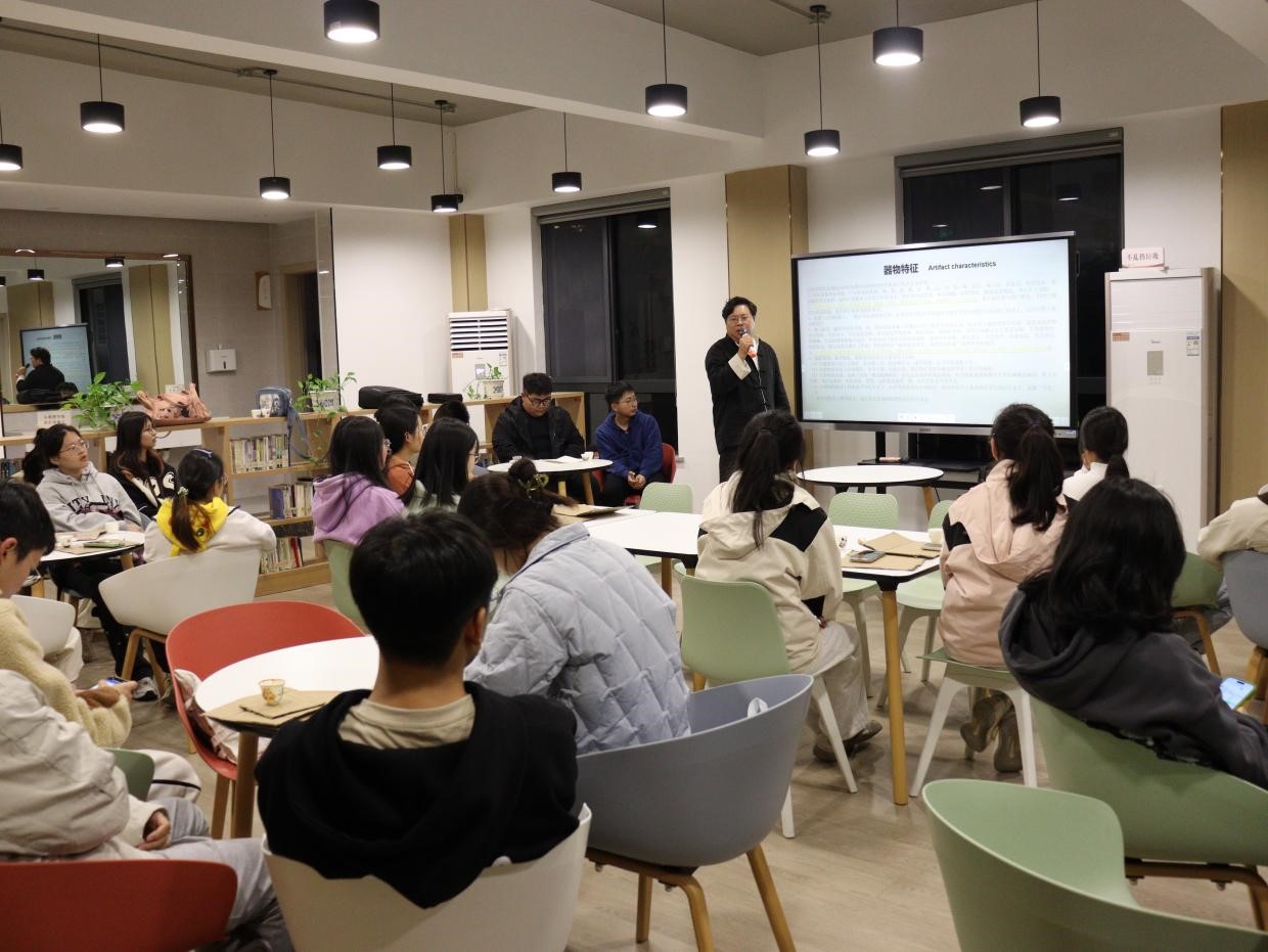 11月13日晚,广文书院在二楼学习交流区开展以“黄岩沙埠青瓷与秘色瓷的前世今生”为主题的陶艺沙龙活动。由黄岩乌岩头见素艺术工坊负责人章洵强主讲,部分书院学生参加。