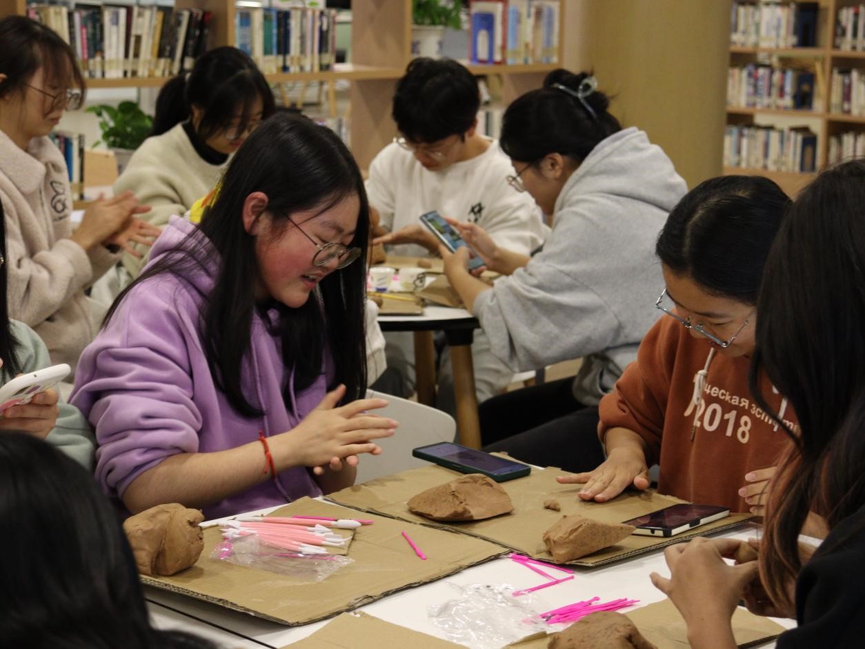 活动伊始,章洵强老师以图文结合的方式向书院学生讲述了沙埠窑的基本情况。“一部陶瓷史,半部在浙江”,沙埠窑有着悠久的历史和庞大的规模,堪称浙东一大青瓷名窑。“九秋风露越窑开,夺得千峰翠色来。”沙埠窑址群的青瓷类产品可归为越窑系,其釉色丰润雅丽,滋润光泽,透明如镜,似冰如玉,不负“千峰翠色”之美誉。随后,书院学生兴致盎然地投入陶艺制作中。在章老师的悉心地指导下,学生们的陶艺作品慢慢有了精细的纹理和漂亮的形态。