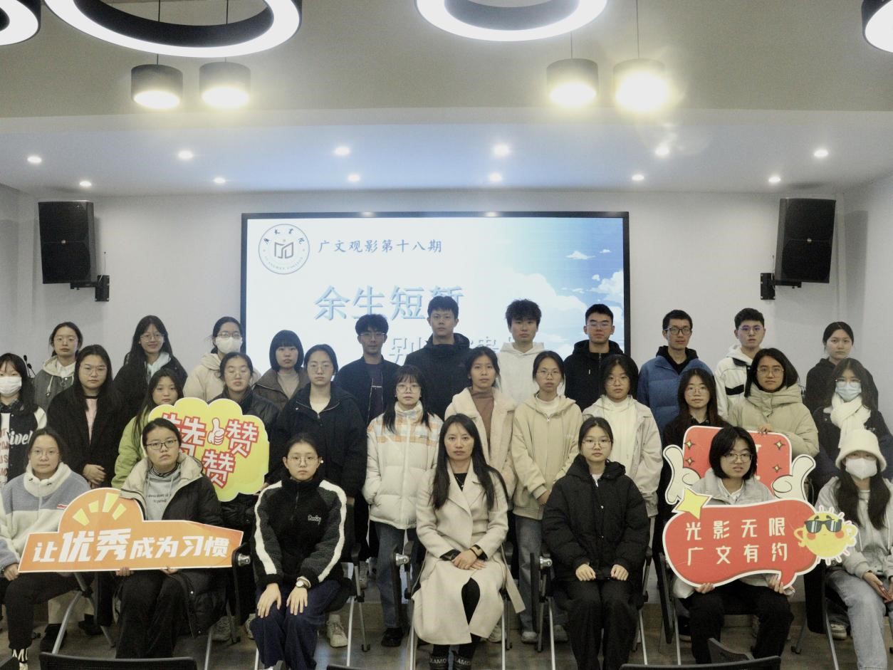 12月8日晚,广文书院在多功能厅举办了以“余生短暂,别留遗憾”为主题的集体观影活动。同学们齐聚一堂,共同观看了电影《遗愿清单》。