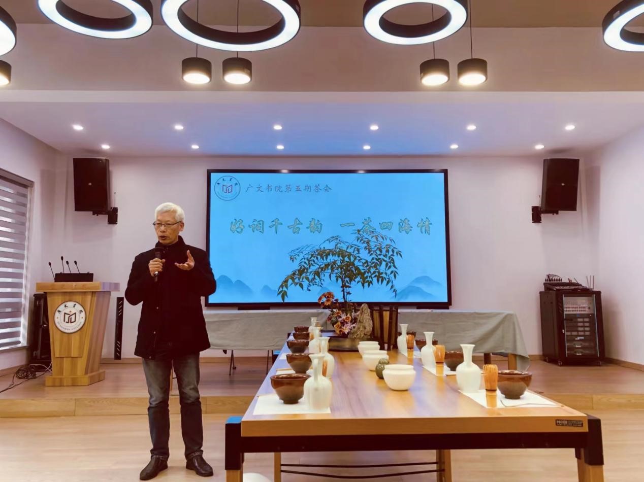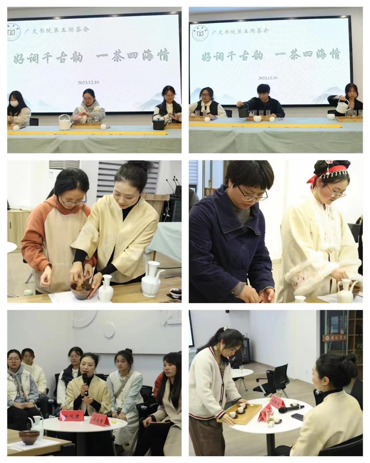 12月10日,广文书院在多功能厅举办了以“好词千古韵,一茶四海情”为主题的第五期茶会活动。广文书院院长胡正武、副院长金旭球、茶艺课老师徐凤君以及部分书院学生参加了本期茶会。