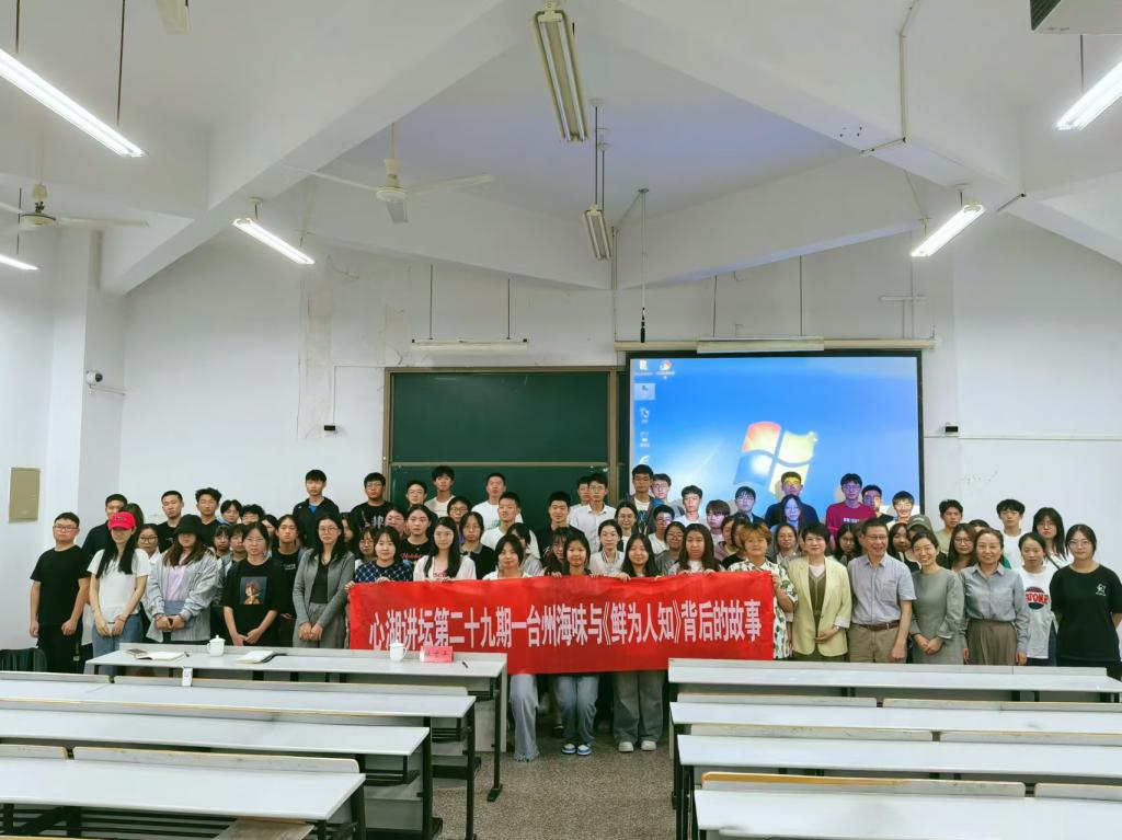 10月16日晚,第29期心湖讲坛在椒江校区2-301教室举行,活动邀请中国散文协会会员,浙江省作家协会会员叶青老师为同学们作“台州海味与《鲜为人知》背后的故事”的主题讲座。心湖书院院长杜才平、学校办公室副主任徐敏、辅导员李凌及70余位心湖学子聆听讲座。